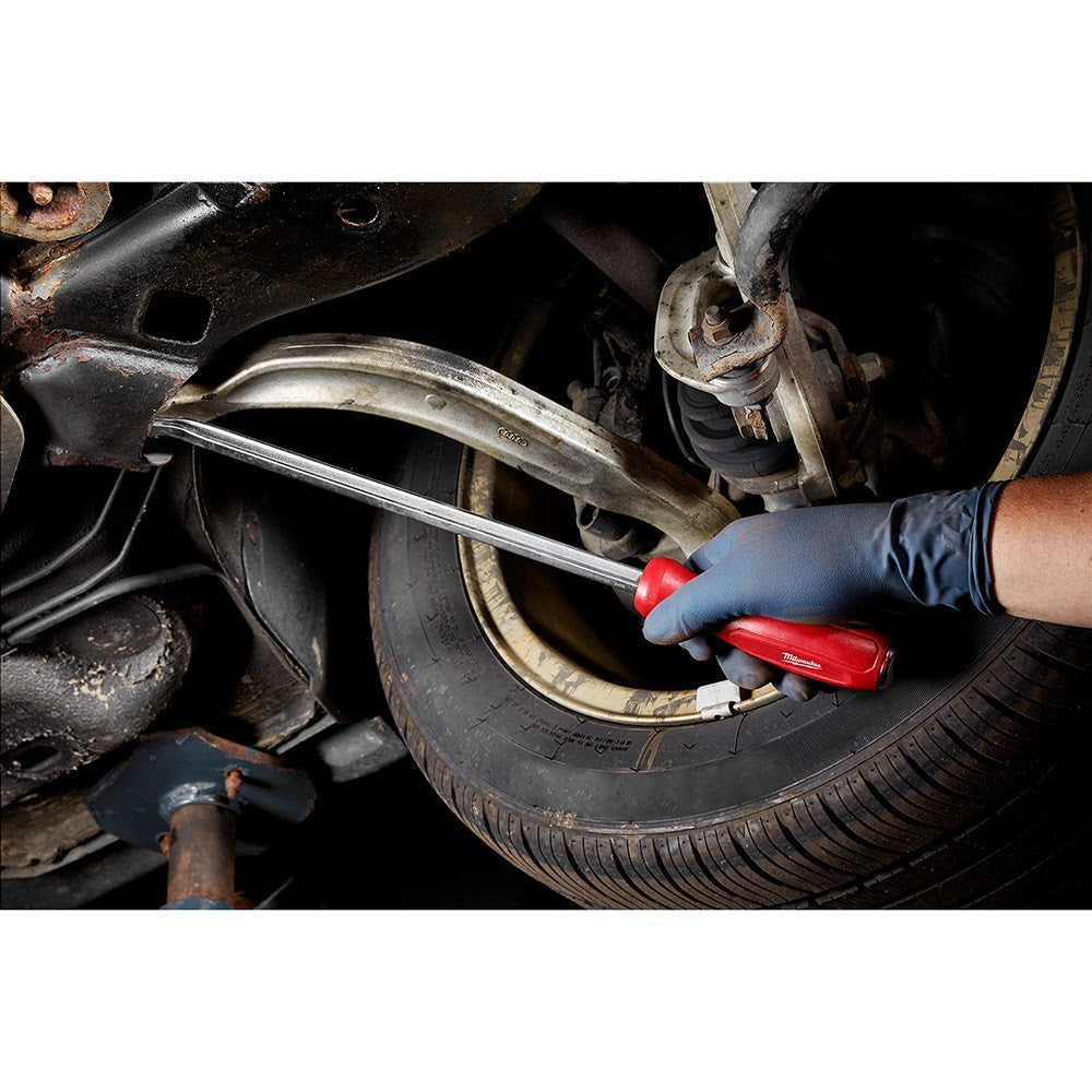 The Milwaukee Pry Bar Set features an I-Beam Design for up to 40% More Prying Strength. The All-Metal Core and Hammer-Ready Strike Cap increase leverage and durability. Each pry bar has a Comfort Tri-Lobe Handle, as well as a Chrome Finish for superior corrosion resistance. The 4pc Pry Bar Set comes in an Easy-Access Tray for a long-term storage solution.