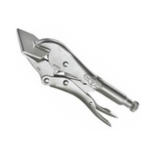 The Irwin Vise-Grip The Original 8-Inch Locking Sheet Metal Tool has a jaw width of 3-1/8 inches and throat depth of 1-3/4 inches. Use it on all sorts of bending, forming, and crimping jobs to secure work pieces. Simply turn the screw to adjust pressure and hold it for repetitive use, then use the guarded release trigger for quick unlocking without worries about accidental releasing. This tool can crimp, double crimp, stretch upholstery webbing, and create bread-pan corners. It's made from high-grade heat-treated alloy steel to maximize toughness and durability, and is backed by a lifetime warranty.